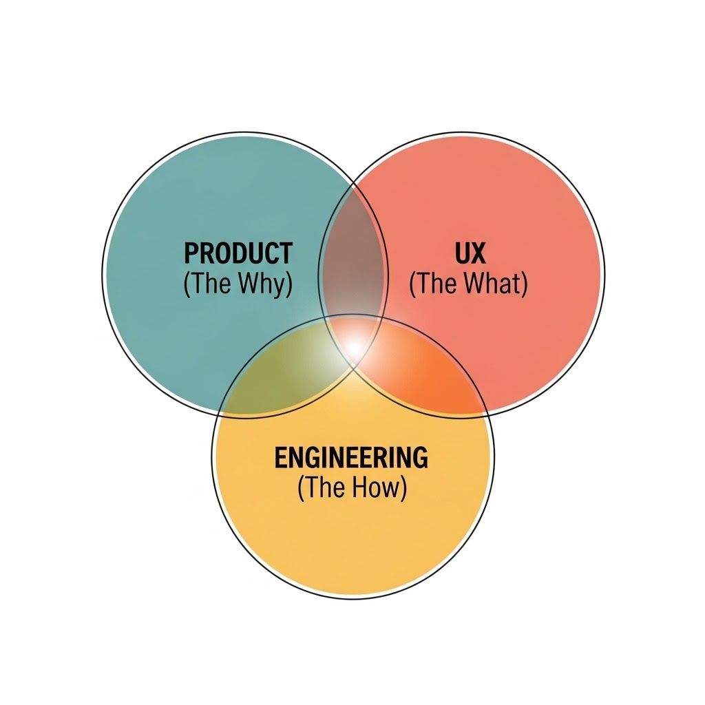 These aren't territories; they are advocacies. We need Product to advocate for the business, UX to advocate for the human, and Engineering to advocate for the system. When those three advocacies clash and collaborate, we find the "sweet spot" of product development. An engineer who understands the "Why" might suggest a technical shortcut that achieves 90% of the value for 10% of the effort—a "How" that Product would never have known to ask for.